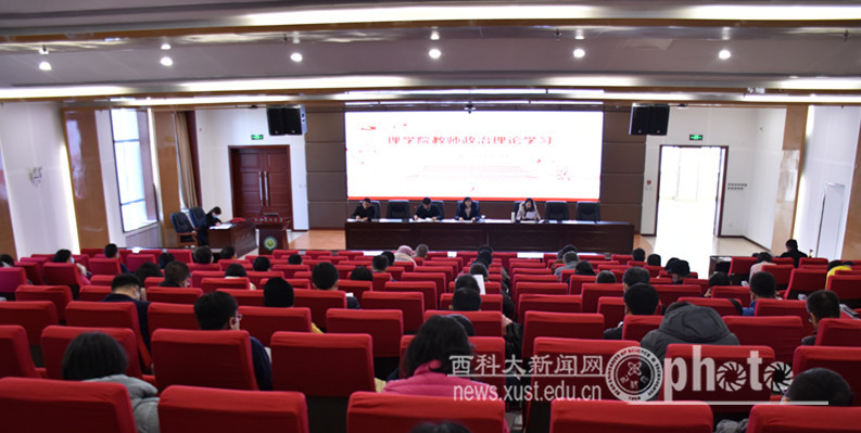 11月10日下午,SUNBET申博在临潼校区骊山校园煤科大楼二楼报告厅召开全院教职工大会,组织教师政治理论集体学习,并进行师德师风警示教育。会议由理公司党委书记孙颜红主持。