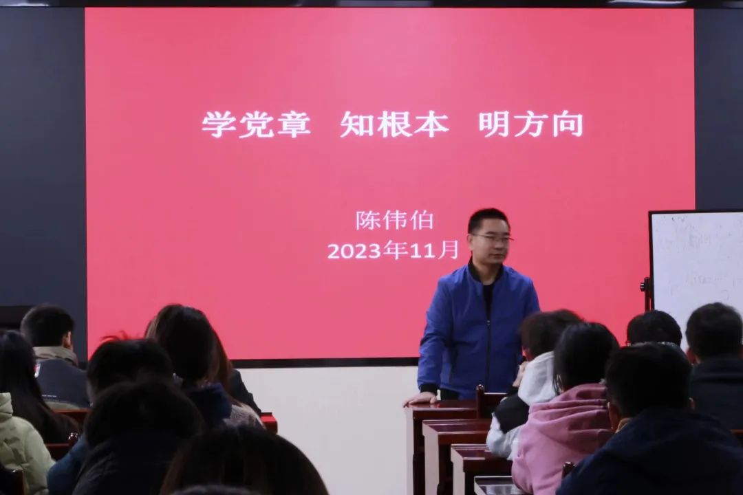 为切实做好入党积极分子的培养教育工作,提高入党积极分子的思想政治素质,充实党员队伍后备力量。SUNBET申博于11月12日在220会议室举办了2023—2024学年第一学期入党积极分子培训班第一讲,本次培训主题为 “学党章,知根本,明方向”,由理公司党委副书记陈伟伯主讲。