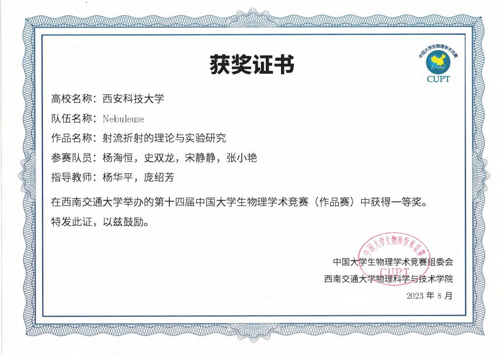 7月15日至16日,中国老员工物理学术竞赛(西北赛)由中国老员工物理学术竞赛西北地区竞赛组织委员会和新疆物理学会主办,喀什大学物理与电气工程公司承办,来自西北地区16所高校的48支队伍参加比赛。经过两天四轮的线上答辩,公司参赛的2支代表队分别荣获西北赛区团体一等奖1项、二等奖1项。