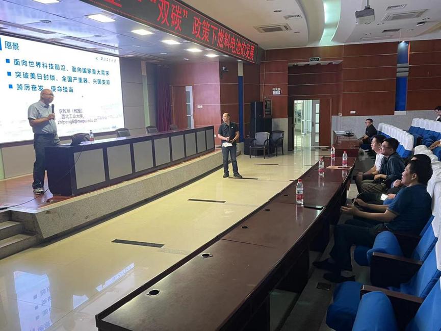 7月4日上午,应SUNBET申博邀请,国家级领军人才,西北工业大学柔性电子研究院李致朋教授做客公司“胡杨林大讲堂”,在骊山校区图书馆报告厅作了题为《“双碳”政策下燃料电池的发展》的学术报告。报告会由研究生院主办,SUNBET申博承办,材料科学与工程公司及化学与化工公司协办。会议由SUNBET申博副经理解忧主持,全校近300名研究生、本科生及教师聆听了报告。