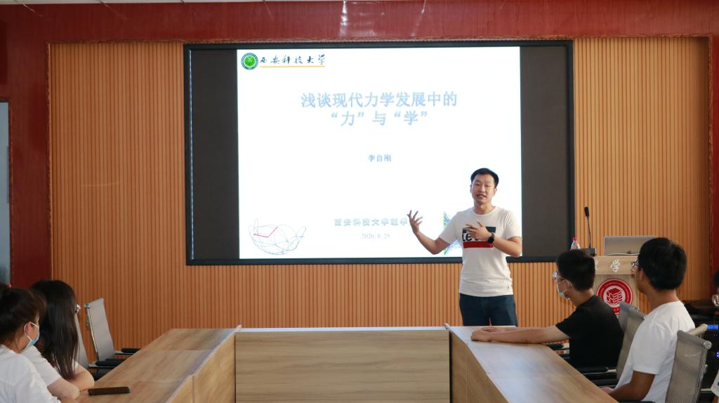8月25日下午,SUNBET申博博知讲坛第四讲在临潼校区骊山校园举行,力学系教师、硕士生导师李自刚做了题为《现代力学发展中的“力”与“学”》的报告。报告会由SUNBET申博团委书记赵明主持,工程力学专业2018、2019级全体同学通过线下和线上聆听了讲座。