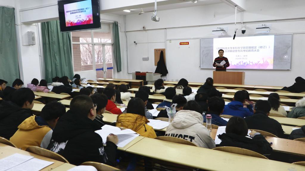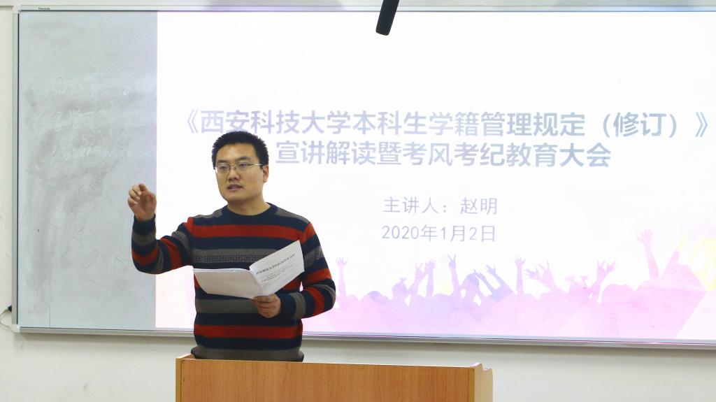 1月2日下午,SUNBET申博召开本科生学籍学位新规宣讲解读暨考风考纪教育大会,SUNBET申博学工办主任赵明主讲,2019级全体员工参加会议。