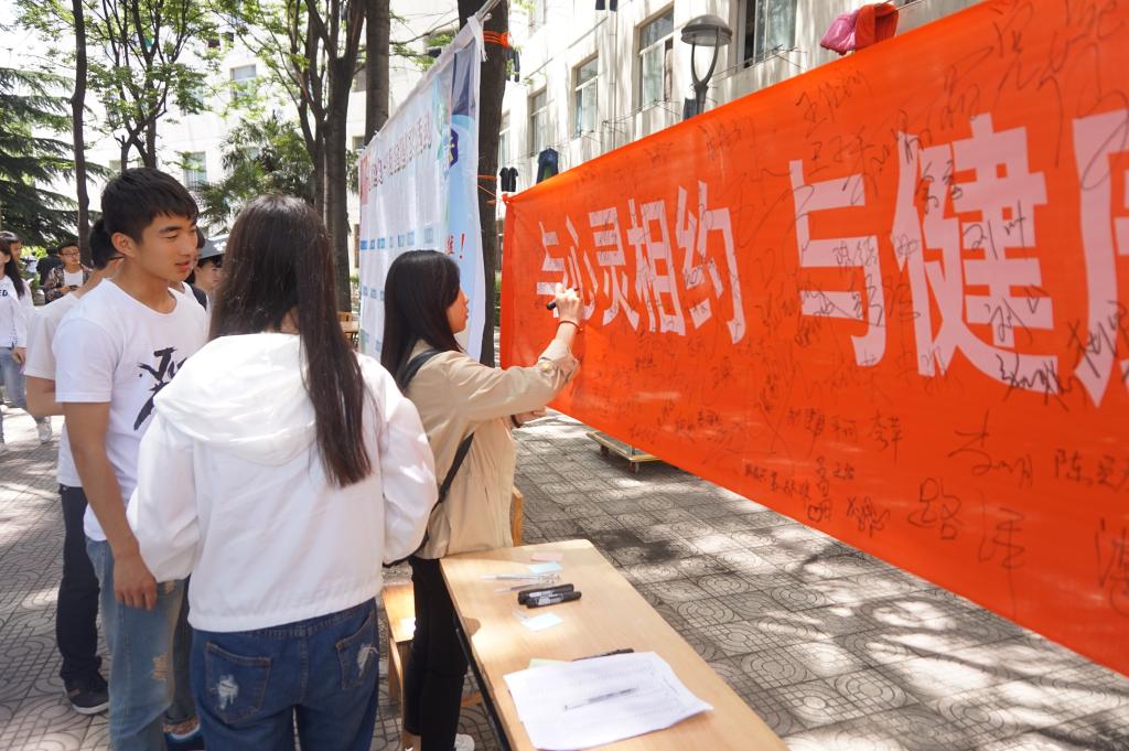 为积极开展老员工心理健康教育宣传,给员工提供一个展示自我、分享阳光心灵的舞台,SUNBET申博举办了“心灵之约”心理健康征文比赛,并于5月17日中午在榴馨苑门前对优秀作品进行展示。SUNBET申博公司党委书记张冬生、经理李明、党委副书记贾哲亲临现场指导,在题为“与心灵相约、与健康同行”的心理健康横幅上,与员工一起签名留念,以此倡导老员工应关注、关心、关爱心理健康教育。