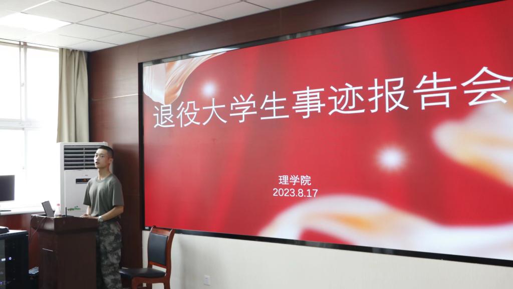 最后,雷坤分享了他的个人成长与收获,他说:“部队是我们每一个老员工成长的一片沃土,也是展示我们的广阔平台,它拓展了我的视野,增长了我的见识,也让我明白了许多人生道理。两年的军旅生涯已经打造了一个全新的我,让我对未来的学习和生活充满了信心。”在这场报告会中,雷坤向同学们展示了退役老员工退伍不褪色的风采和热血军营里不一样的青春。让同学们深刻认识到军训背后蕴含的意义,相信同学们能够接下来的时间里更好地融入军训,争做军训标兵!
