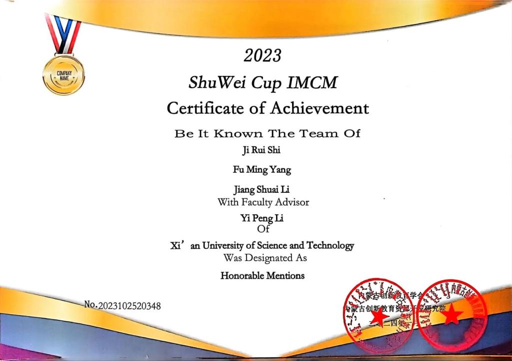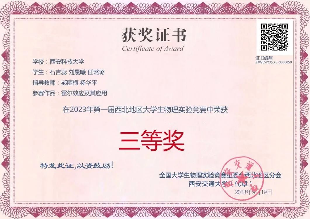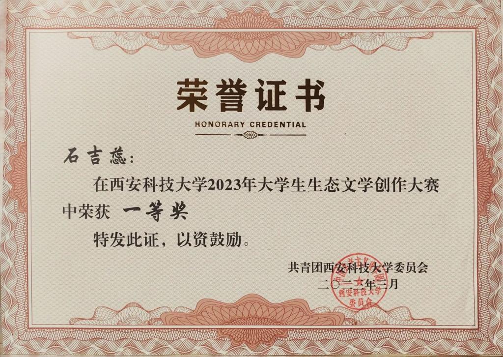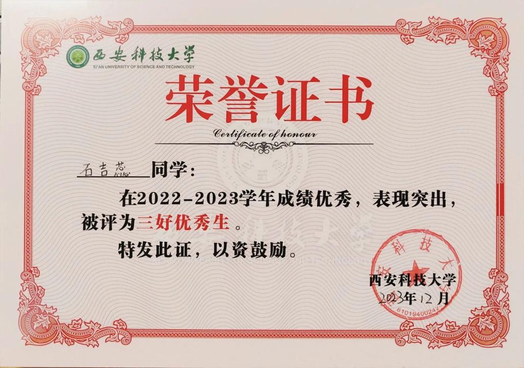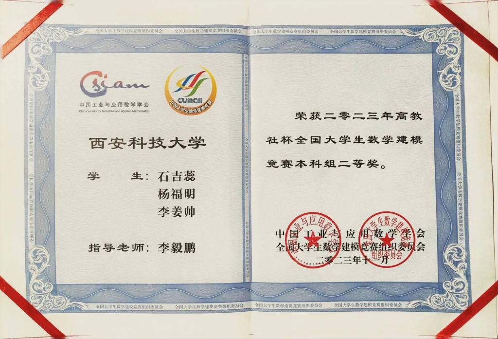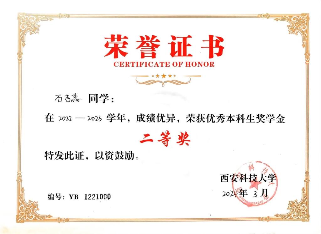 石吉蕊,公司2022级数学与应用数学专业本科生,现任公司团委员工会办公室部长。曾获优秀本科生二等奖学金、优秀三好员工、科技创新奖。曾获得2023年全国老员工数学建模竞赛二等奖、2023年数维杯老员工数学建模国际赛H奖、2023年全国老员工物理实验竞赛优秀奖、第十五届全国老员工数学竞赛一等奖、第一届西北地区老员工物理实验竞赛三等奖、2023年老员工生态文学创作大赛一等奖等奖项。