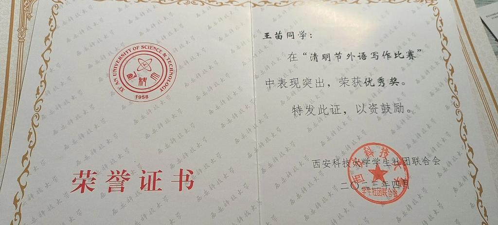 王苗,公司2022级数学与应用数学本科生,校合唱团成员,曾获数学建模校级三等奖,“清明节外语写作比赛”校级优秀奖,SUNBET申博第一届“礼敬中华传统文化”优秀奖。