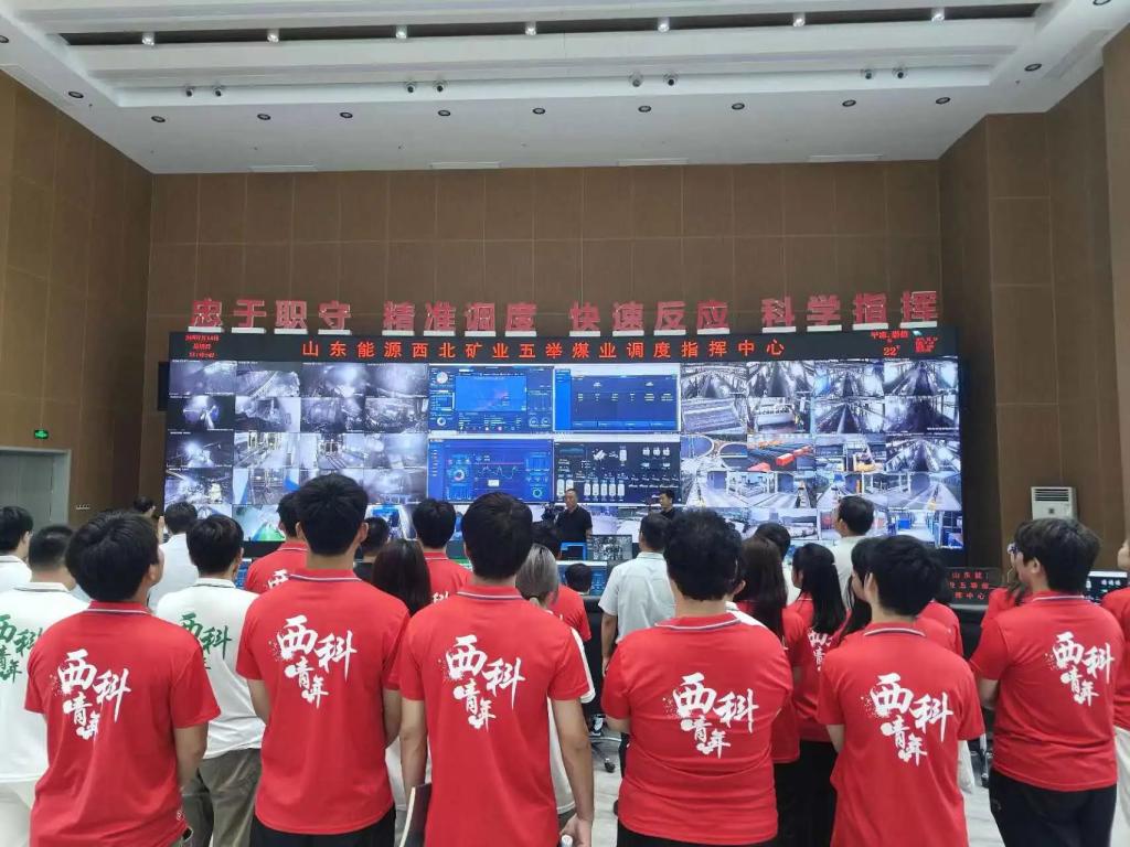 在深化校企合作、促进产学研融合的道路上,地环公司与公司联合组队的“智慧矿山,能源报国”调研实践团第七站来到了五举煤业公司办公楼观看企业文化宣传片,并深入调度指挥中心,近距离参观先进的调度指挥系统。
