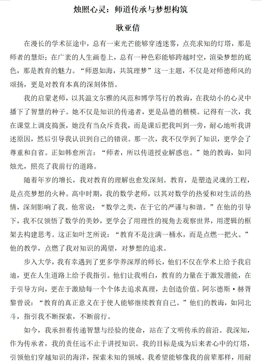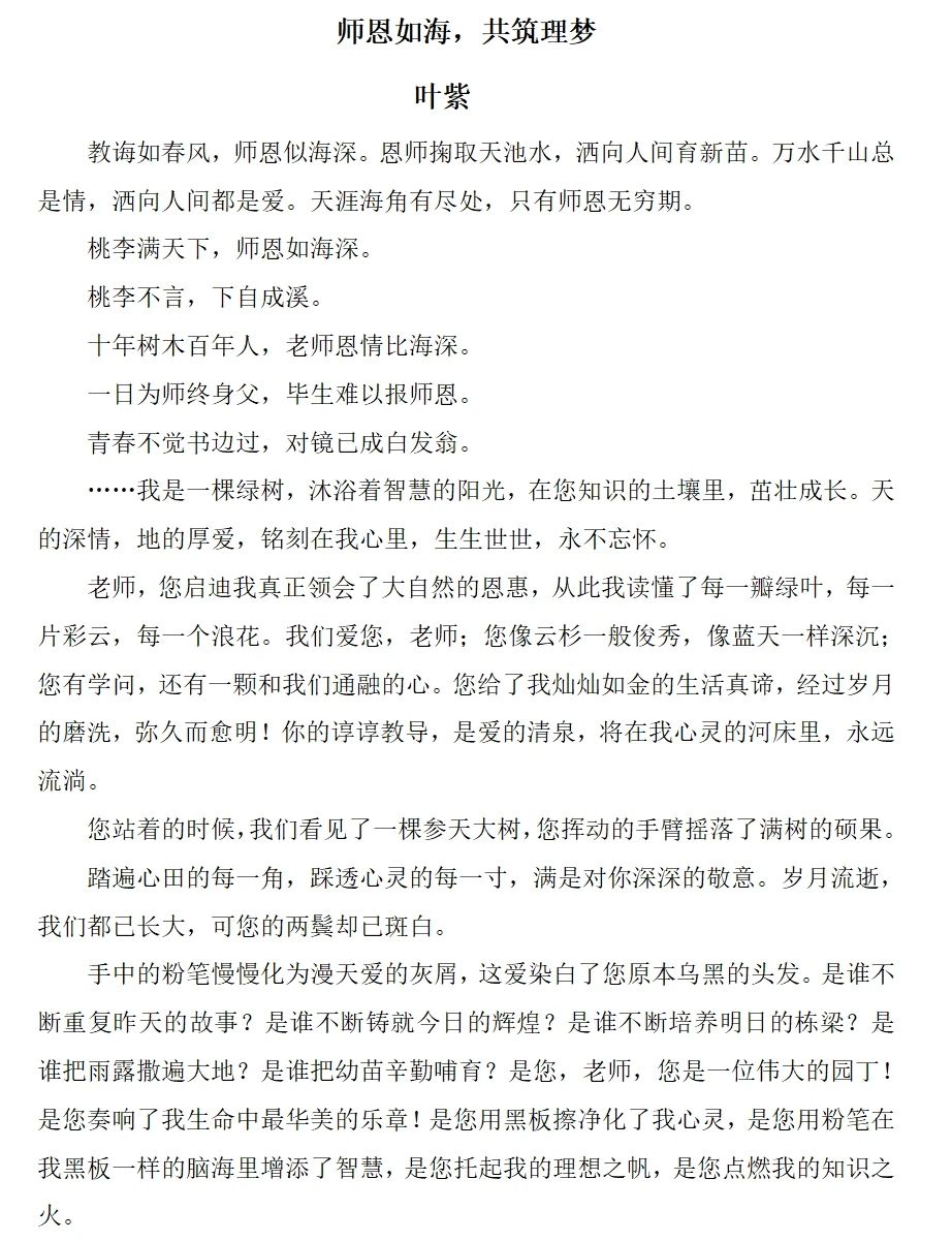 征文活动自启动以来,收到了各年级员工的积极投稿,每一篇作品都承载着员工对老师的深深敬意和对科学探索的无限向往。这些作品不仅展现了公司学子卓越的文学才华,更体现了师生之间深厚的情谊和共同追梦的历程。