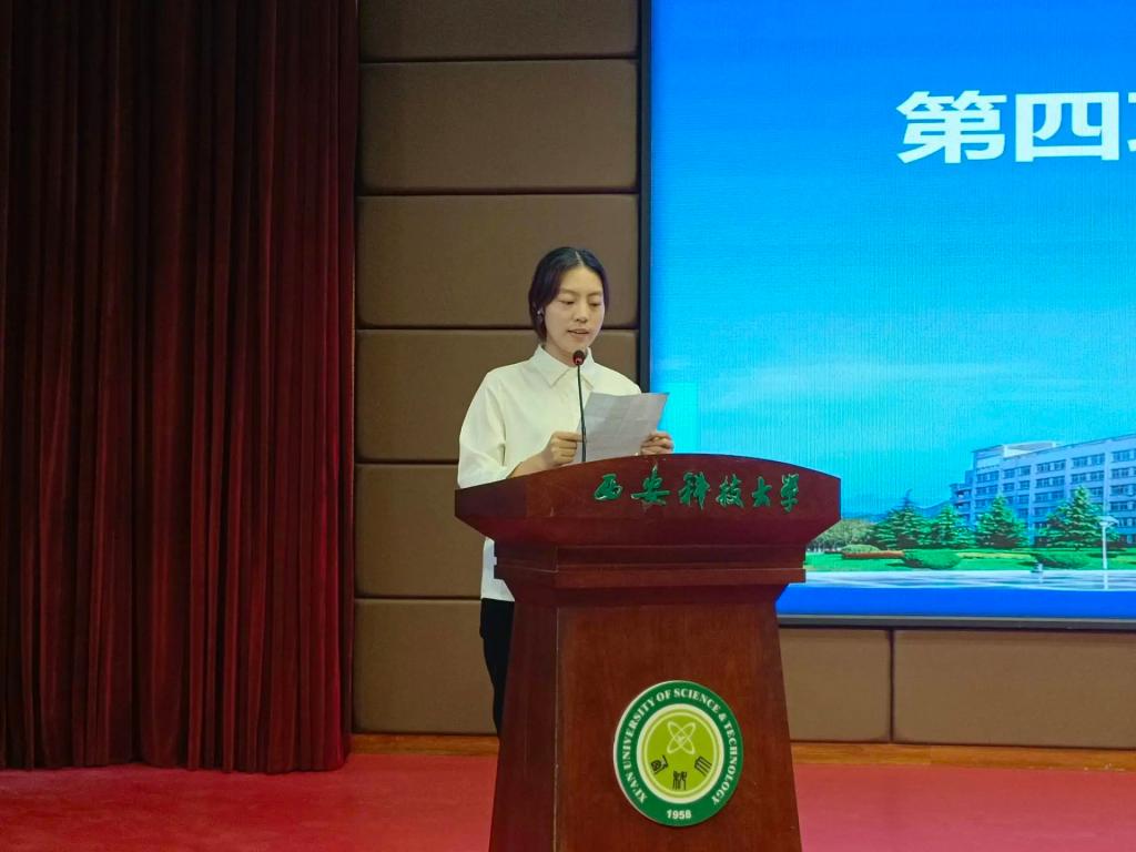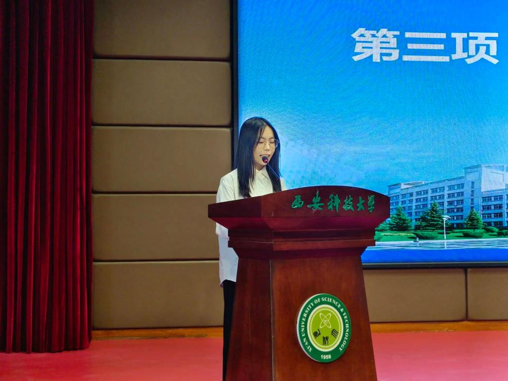 研究生代表彭艳颖发言。她以自己的求学经历为例,分享了从本科生到研究生阶段的成长与蜕变,鼓励同学们要勇于面对挑战,不断突破自我,在科研道路上勇攀高峰。
