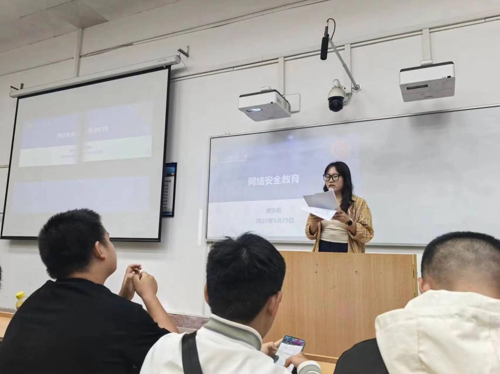 为深入学习宣传习近平总书记关于网络强国的重要思想,落实网络安全工作“四个坚持”的重要指示精神,并进一步加强国庆节前安全教育,确保员工度过一个安全、愉快的假期。公司举办了网络安全暨国庆节前安全教育会,本次教育会由院2022级与2024级辅导员薛一丹主讲,公司2022级与2024级全体员工参加。