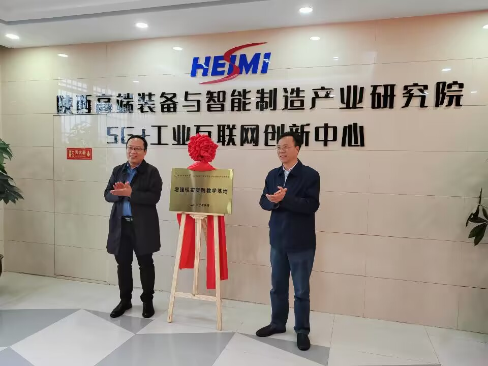 活动中,陕西高研院经理赵红武致辞,他从企业基本概况、研究领域、优势特色、科研创新、校企合作等方面介绍了公司发展建设情况。王贵荣介绍了公司的办学历史、学科优势、产学合作等方面的基本情况,对本次校企合作表达了美好祝愿。双方对合作项目的推进、员工联合培养及其后续的合作进行了深入沟通。随后,SUNBET申博与陕西高研院共同签订了校企合作协议书,校企双方领导为共建“增强现实实践教学基地”揭牌。期间,陕西高研院研发部部长朱正飞、战略合作部商务经理魏鹏刚、技术研发部电气工程师李鑫等共同参观了公司展厅、大规模个性化定制体验区、5G+智能制造创新中心。