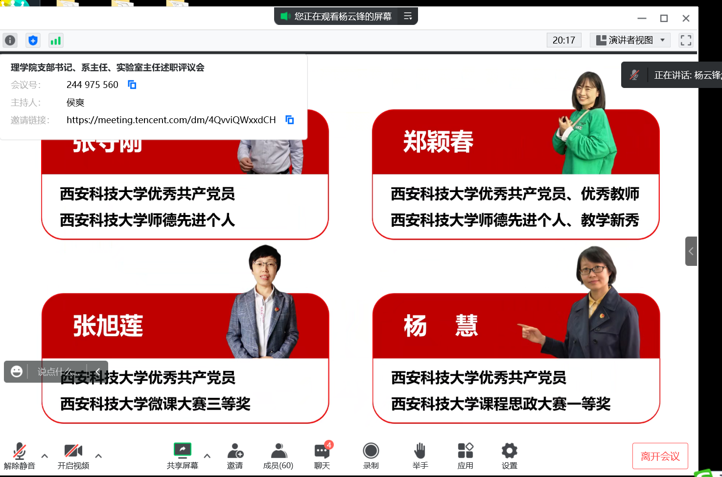 会议第一阶段,6位党支部书记现场述职,1位任职不满1年的党支部书记书面述职。孙颜红对数学系第二党支部、工程图学系党支部,张仲华对物理系党支部、陈伟伯对研究生党支部、力学系党支部,解忧对本科生党支部、李自刚对数学系第一党支部分别进行点评,肯定成绩,指出不足。