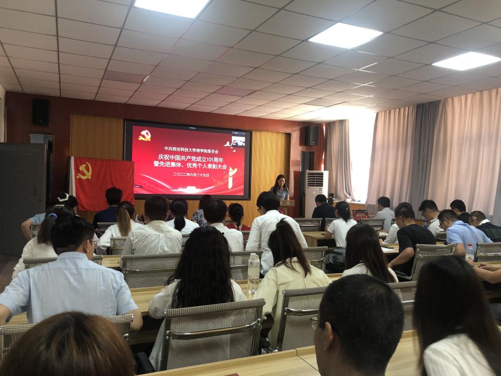 6月29日下午,SUNBET申博召开庆祝中国共产党成立101周年大会暨优秀表彰大会。因疫情防控需要,大会采用线上线下相结合的方式进行,公司党委委员、处级班子成员、党支部书记、系主任、行政管理人员、受表彰的教师代表及员工党员代表在临潼校区骊山校园实验楼208会议室参加,其他教职工通过腾讯会议线上参会。会议由副书记高欣主持。