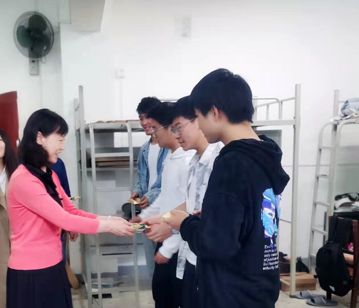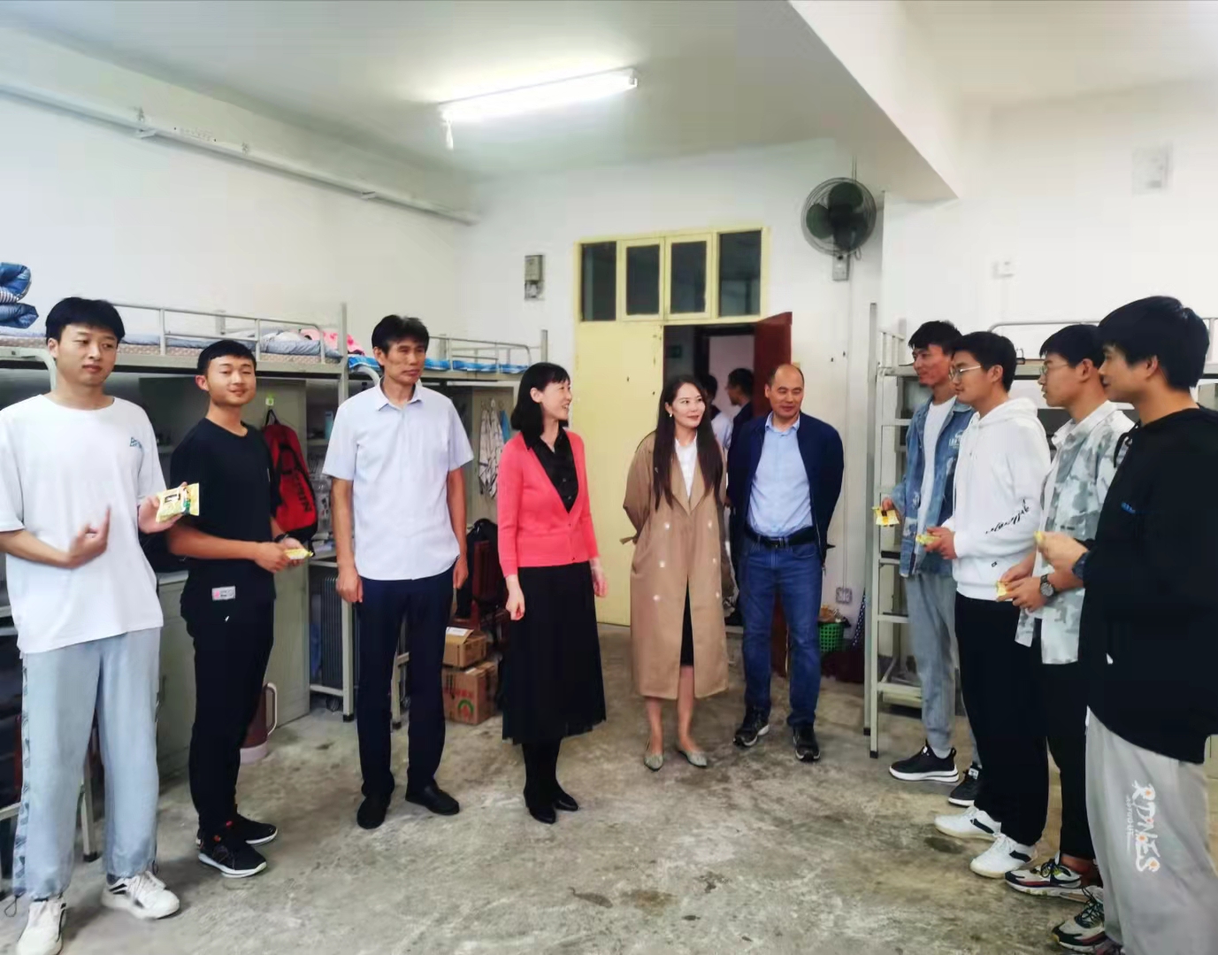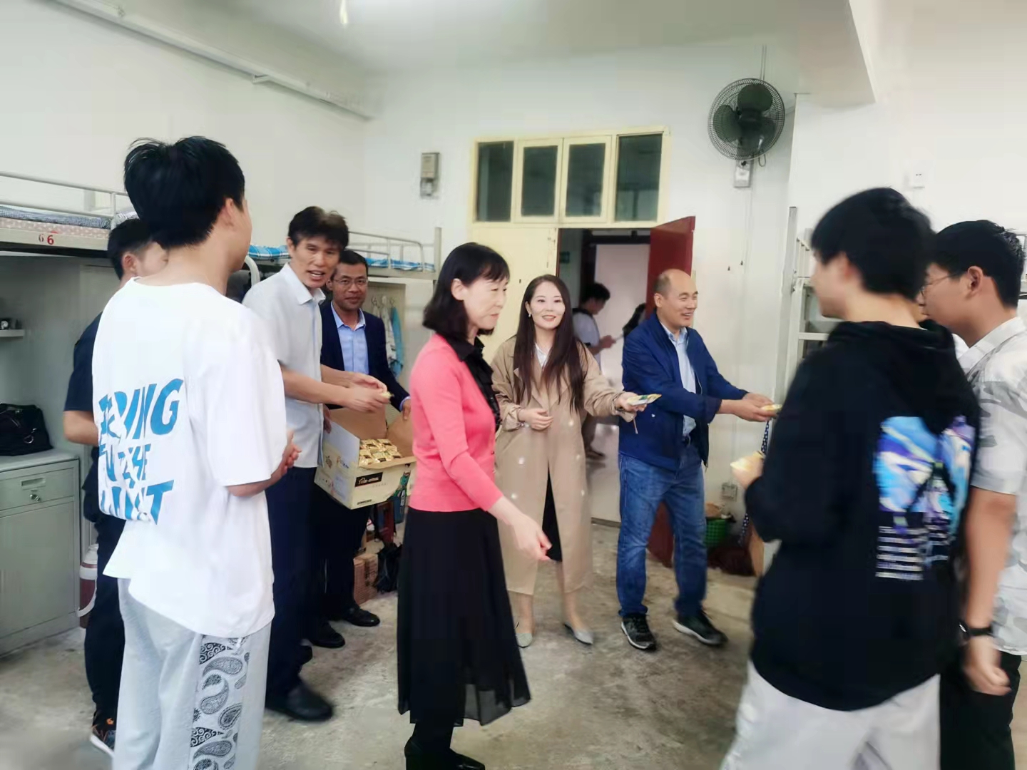 公司为表达对留校员工的关心与祝福,提前精心采购了各种口味的月饼。9月18日中午,公司班子成员及辅导员等来到2021级新生公寓,给同学们送去了香甜的月饼和节日的祝福,让同学们感受到公司的温暖和关怀。发放月饼的过程中,公司领导班子成员详细询问了近期员工学习、生活情况,同时送上中秋祝福。