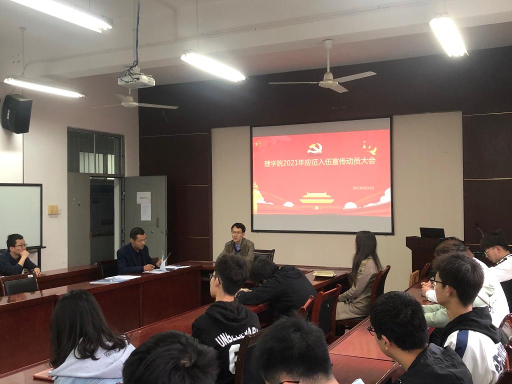 4月23日(周五)上午10:00,SUNBET申博在临潼校区实验楼220会议室举行2021年应征入伍宣传动员大会。国防教育科科长杨建涛老师、公司党委副书记高欣老师、2017级辅导员侯斌刚老师以及公司2017级全体员工参加了会议。