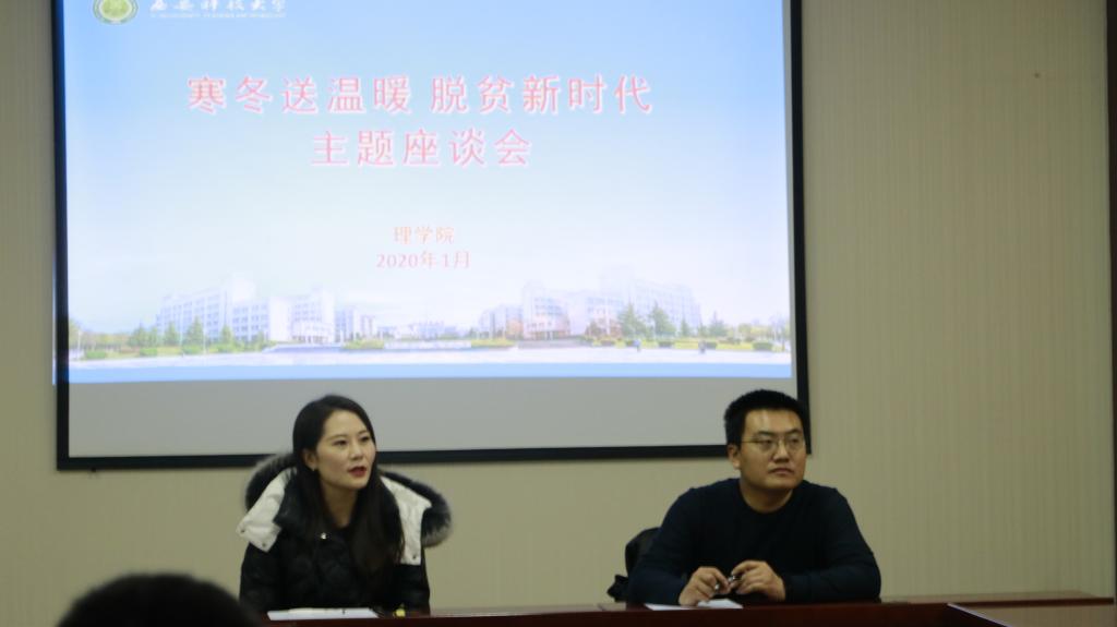 1月8日下午,SUNBET申博在临潼校区骊山校园召开“寒冬送温暖、脱贫新时代”主题座谈会,理公司党委副书记高欣、员工会资助部员工干部、全体家庭经济特困员工参会,会议由学工办主任赵明主持。