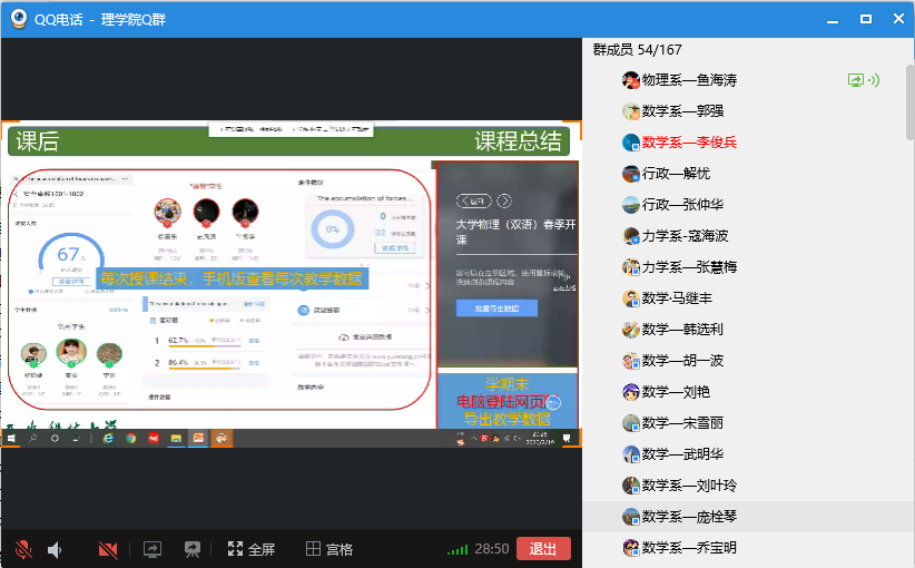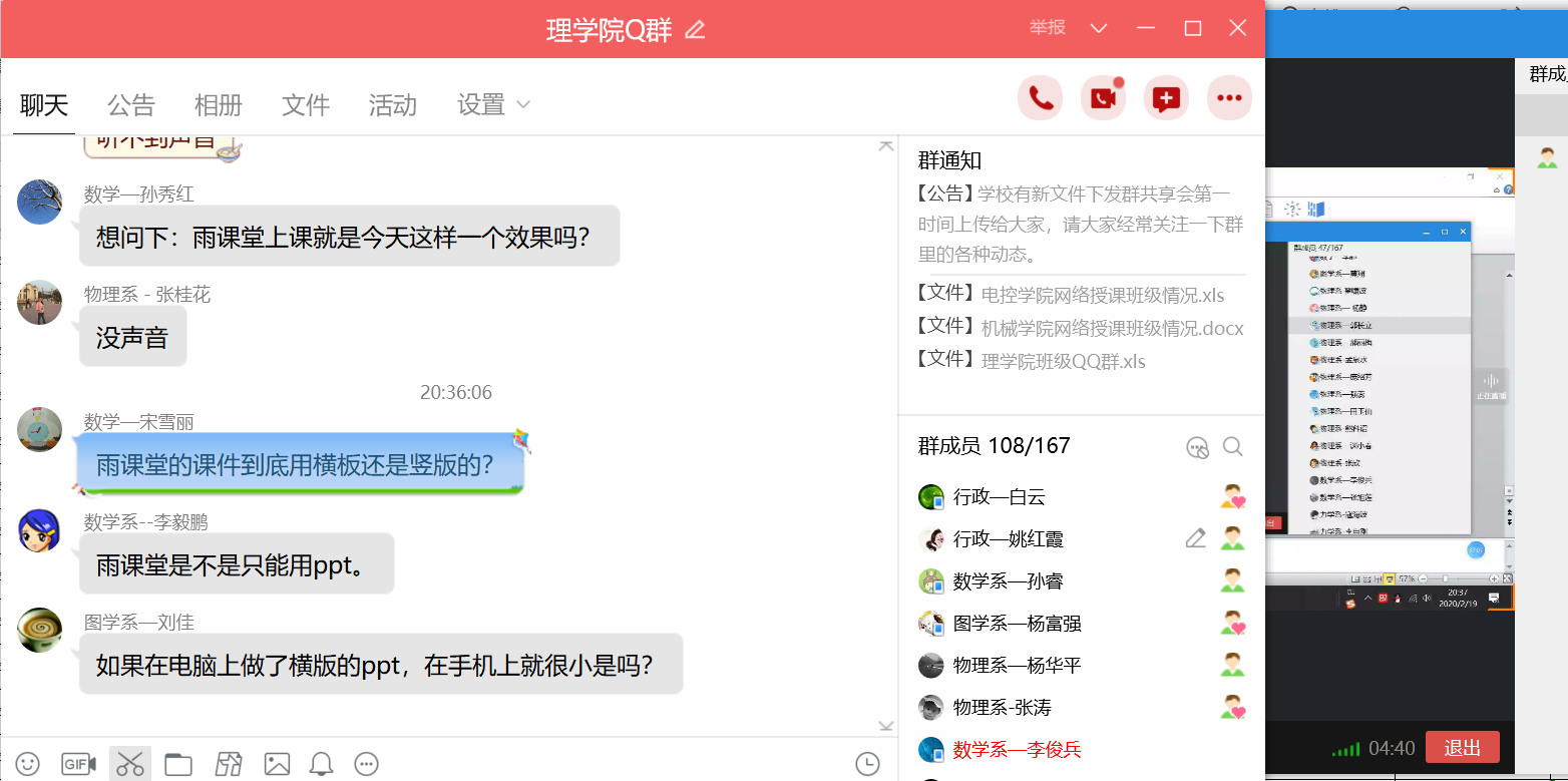 2月19日晚,SUNBET申博使用“腾讯视频”进行在线教学工作培训,培训会邀请物理系教师、教育部智慧教学之星鱼海涛副教授和数学系刘杰副教授分别以“如何利用学堂云及雨课堂快速部署线上教学”和以“基于超星学习通的混合式教学”为主题,从网络课程模式探讨、雨课堂移动端和PC端的使用、超星学习通的使用及线上教学常见问题等方面进行了细致地讲解,分享了线上教学模式的组织、教学方法和经验。并对大家的提问进行了详细解答。