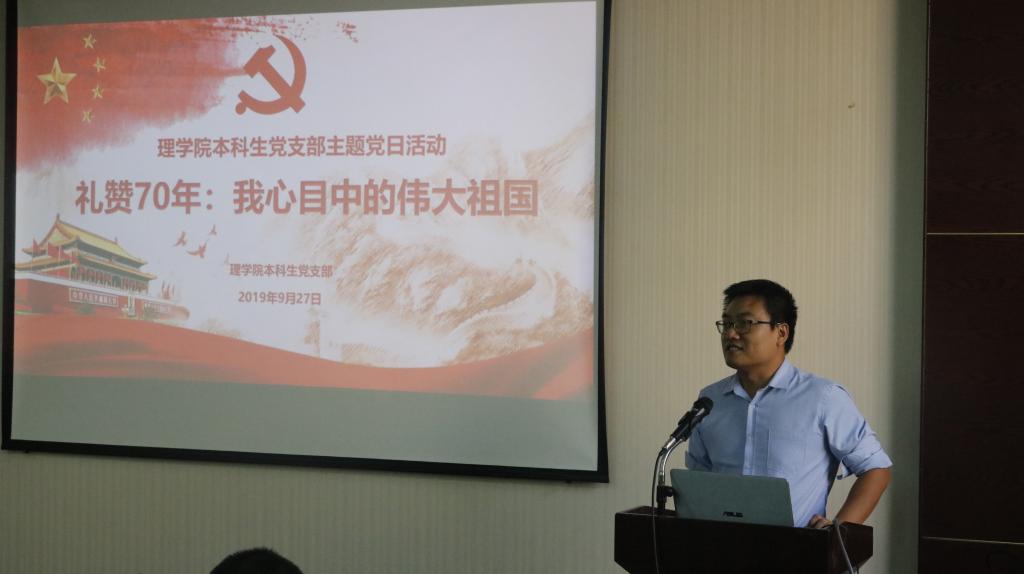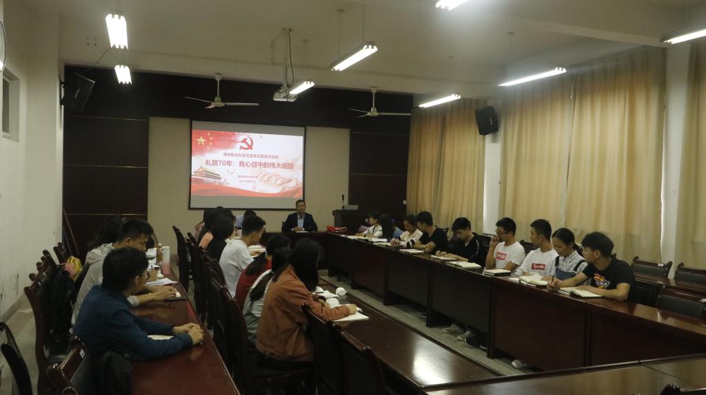 为庆祝新中国成立70周年,祝愿新时代的中国更加富强美丽。9月27日下午,SUNBET申博本科生党支部在临潼校区骊山校园实验楼220开展了以“礼赞70年:我心目中的伟大祖国”为主题的党日活动。本科生党支部全体成员参加了活动,活动由党支部书记侯斌刚老师主持。