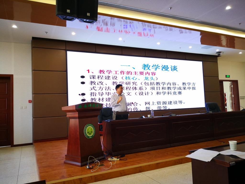 刘三阳教授的报告风趣又幽默,实践性强,会场多次掌声雷动,报告的每一个细节都展现了国家级教学名师的风采,勤勤恳恳的准备,精神饱满的状态,简洁美观的PPT,富有魅力的语言……让听讲者领略了国家级教学名师的水平,更让在座教师对教学方法创新、育人模式创新进行了深入的思考,从而回归初心、倾心教学、潜心育人。