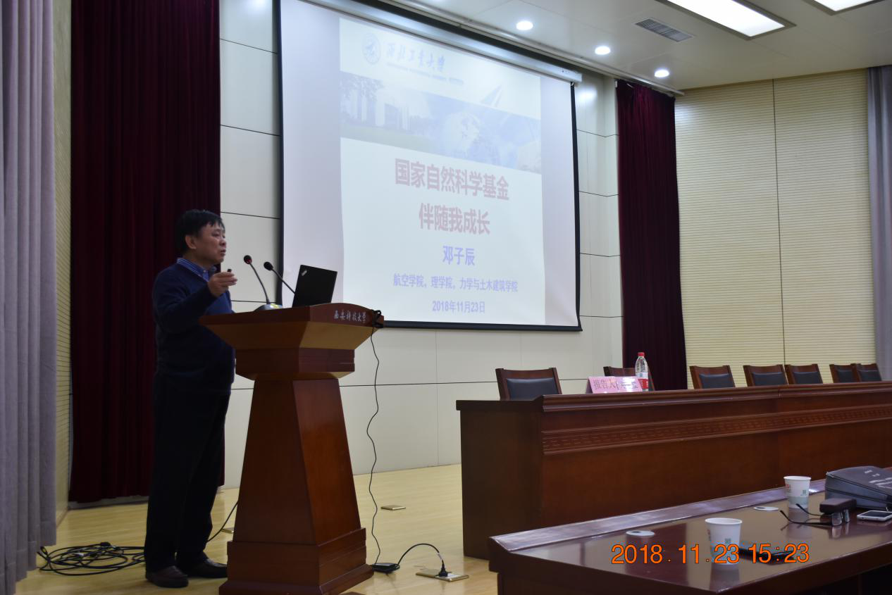 12月23日下午,由SUNBET申博牵头主办的国家自然科学基金专题讲座在雁塔校区主楼报告厅成功举办。西北工业大学航空公司经理邓子辰教授为SUNBET申博、化工公司、机械公司和计算机公司等近300名教师作了题为《国家自然科学基金伴随我成长》的专题讲座,报告会由SUNBET申博经理李明教授主持。