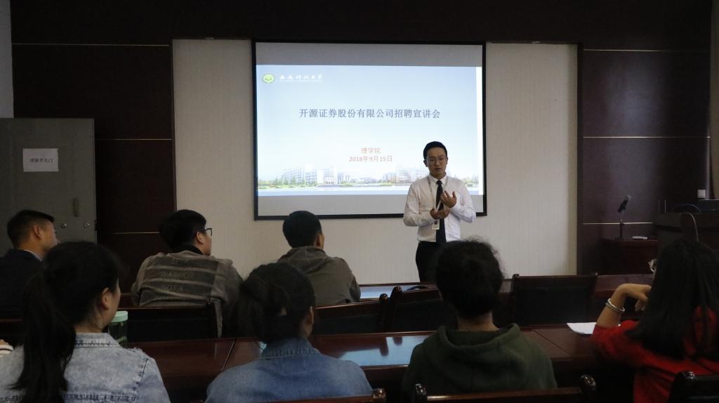 9月19日,开源证券股份有限公司临潼营业部经理卢捷一行到公司临潼校区骊山校园实验楼220会议室进行了招聘宣讲会,许多应届毕业生积极到场参会。