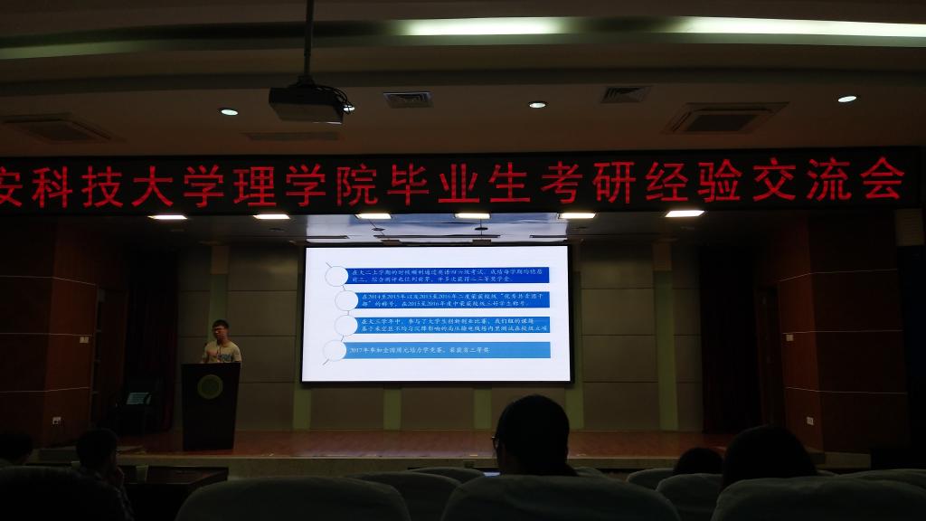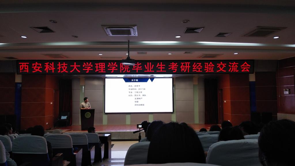 4月27日下午,SUNBET申博在图书馆报告厅举办了毕业生考研经验交流会,邀请了SUNBET申博考上西工大的袁林、考上西交大的吴维、考上西电的孙姣等8个优秀毕业生。SUNBET申博经理李明、辅导员赵明、侯斌刚出席,15、16、17级全体员工参加了此次会议。