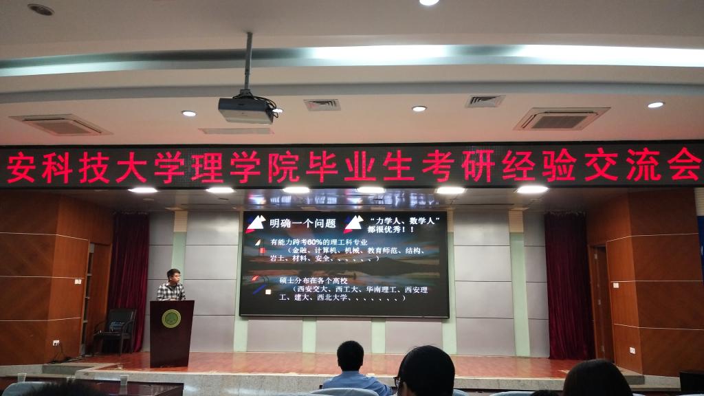 会议开始李明经理进行讲话,分析了当下的考研形式,鼓励同学们积极考研。之后,几位优秀毕业生结合自己的考研经历详细地给同学们讲解了考研的必要性和备考期间应注意的问题,使同学们对考研有了更具体清晰的认识。最后,同学们对考研过程中可能存在种种问题进行了提问,学长学姐们轮流进行了解答。