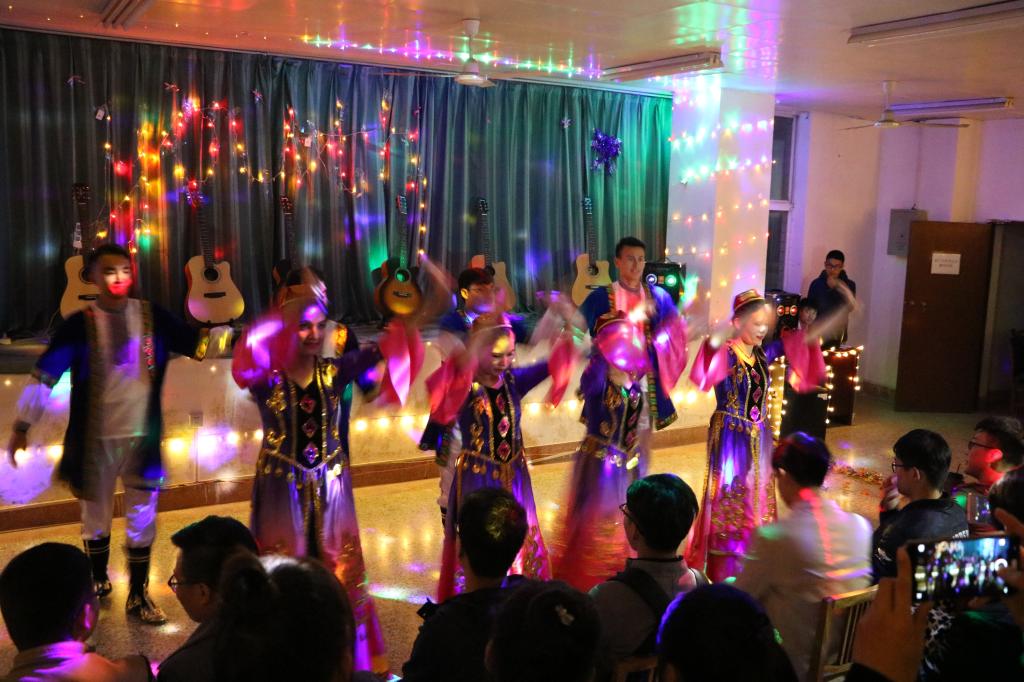 主持人上台致开幕词,宣布晚会正式开始。本次晚会节目丰富多彩,个人独唱《多幸运》、舞蹈表演《说出愿望吧》、双截棍表演,不同风格的节目完美地结合在一起,演绎出一场视觉盛宴。把现场气氛推向高潮,彰显出SUNBET申博学子的骄人风姿。歌曲《山水之间》、啦啦操表演、独唱思乡曲《车站》、新疆舞蹈,悠闲中的忧伤,遥远中点点憧憬。