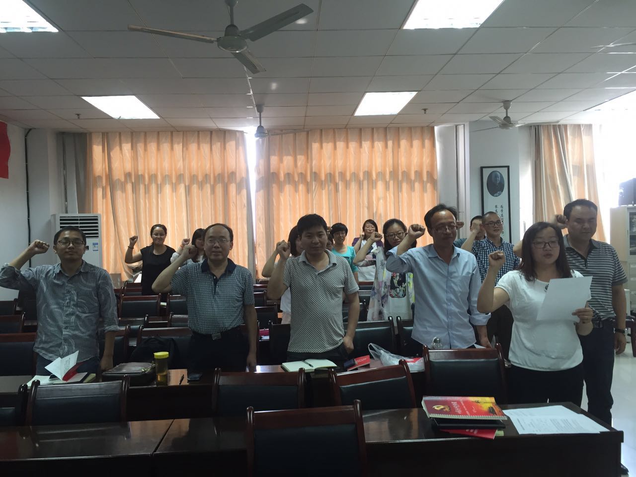 6月3日下午,SUNBET申博教工第一党支部在雁塔校区公司会议室组织“两学一做”专题学习会。宣传委员葛丹同志带领大家重温入党誓词;组织委员夏小刚同志领学《中国共产党章程》总纲部分;党支部书记杨云锋同志对第一党支部“两学一做”6月份的学习教育计划进行安排,他要求支部全体党员要深刻领会“两学一做”学习教育的重要意义,力求做到集中学习有成效、自学研读有收获、学习教育有特色、专题讨论重交流。