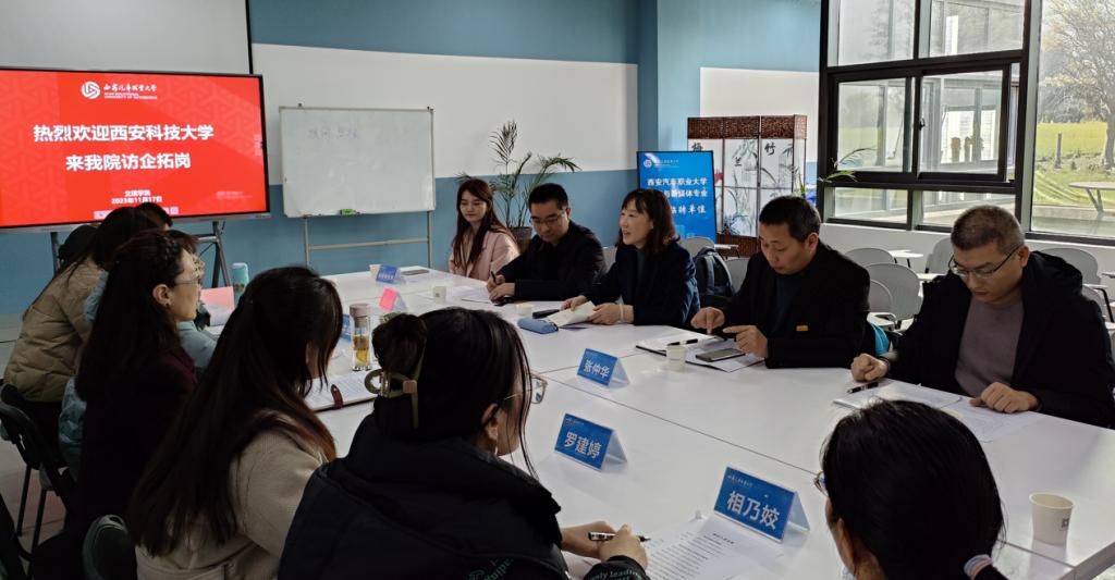 为深入拓宽员工就业渠道,促进临潼高校联盟建设,11月17日下午,理公司党政领导、数学系师生一行6人到西安汽车大学开展访企拓岗活动。汽车大学文SUNBET申博经理张秦川、副经理许亚平、院办干事任舒婷、数学教研室主任相乃姣、物理教研室主任王玉宝和骨干教师贺筱军、罗建婷、高翻翻、陈娟以及员工处教师阿依布拉克等参加了座谈会。