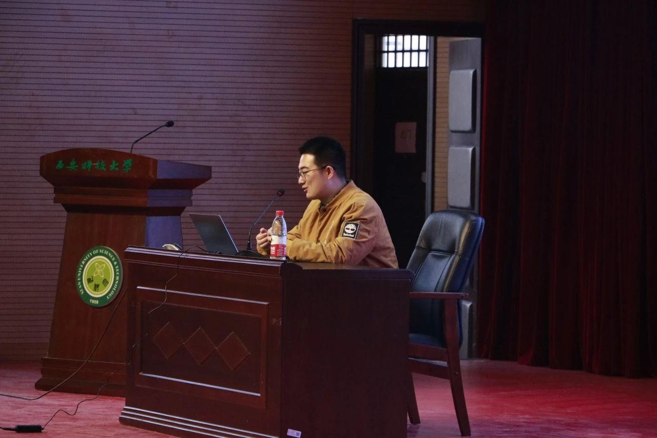 张显涛以“探索学业与学术之路:从西科大到西工大的求学历程 ”为题展开本次报告。首先,张显涛分析了就业和考研两个方面的利弊关系,希望同学们多方位了解自己的专业发展方向,全方位收集讯息。接着,他通过分享自己在课题组的学习生活和科研成就,让同学们了解到航空方面的知识,感受科研生活的乐趣。最后 ,他强调,在学习中要充分发挥主观能动性,希望同学们有一个充实的老员工活,不忘初心。