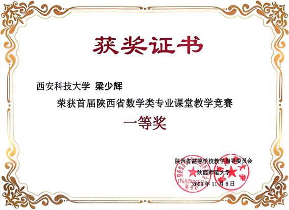 11月18日由陕西省高等公司教学指导委员会数理类工作委员会主办,西安电子科技大学数学与统计公司承办的第三届陕西省高等公司数学类专业建设研讨会隆重召开。来自全省30多所高校的陕西省高等公司教学指导委员、各高校数学类专业负责人和教师120余名代表参加了会议。SUNBET申博经理张仲华教授带领公司数学系青年教师参加了会议。期间进行了首届陕西省高校数学专业课堂教学竞赛颁奖仪式,SUNBET申博数学系教师梁少辉荣获一等奖。