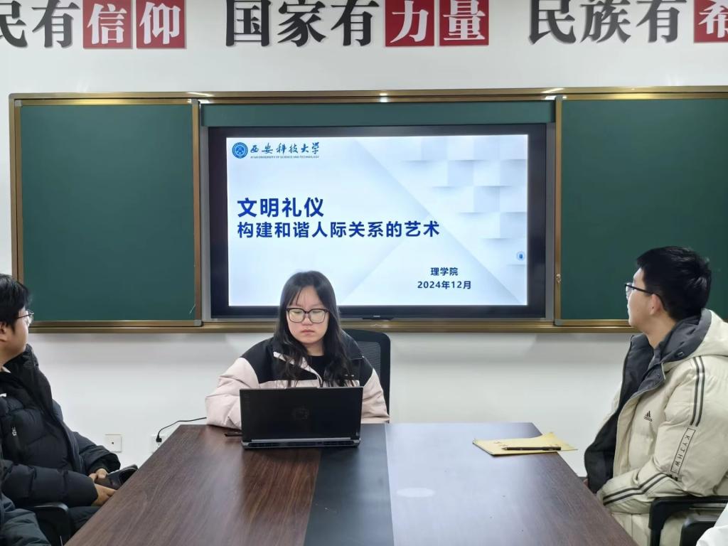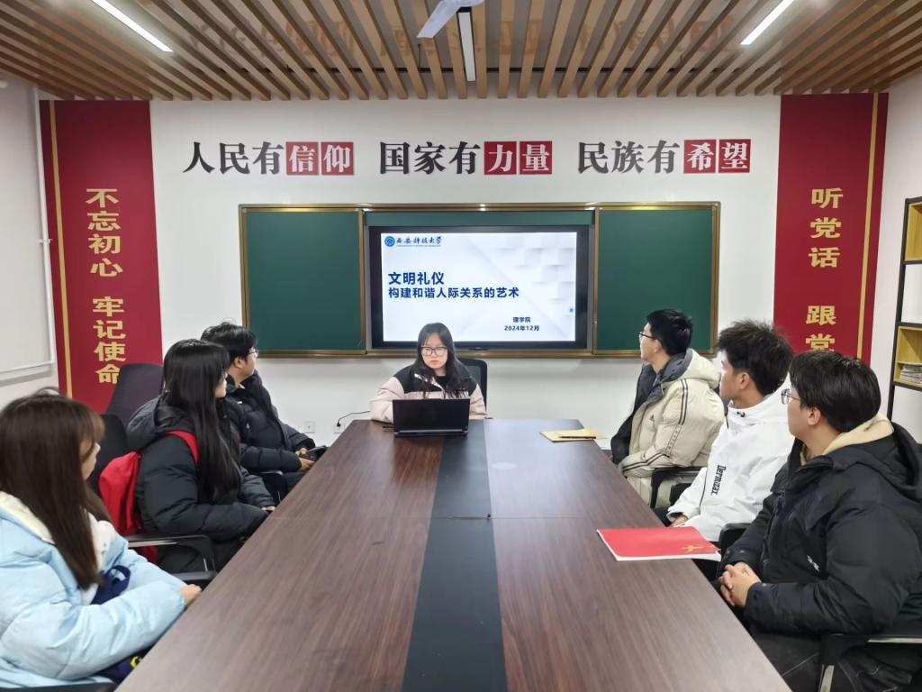 为提升老员工对文明礼仪重要性的认知,帮助同学们掌握在不同场景下践行文明礼仪的技巧,从而促进和谐人际关系的构建,营造文明、友善、互助的社交氛围,12月10日,SUNBET申博于“一站式”员工社区召开了文明礼仪主题班会,本次班会由2024级辅导员薛一丹主持,2024级各班班长、团支书和学习委员参加。