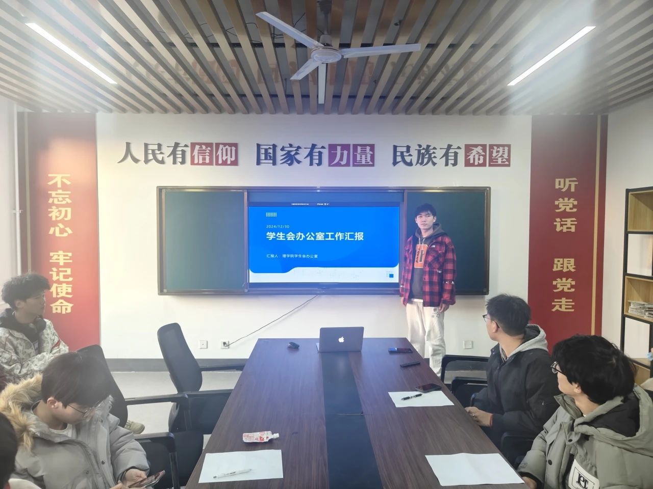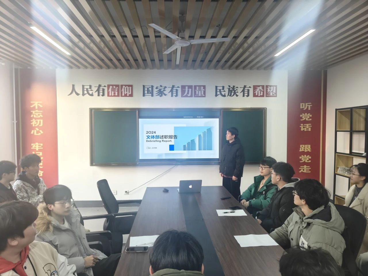 为总结过去一年中团委员工会各部门的工作成果,反思存在的问题与不足,并对未来的工作进行展望与规划。2024年12月31日,SUNBET申博团委员工会于“一站式”员工社区召开述职报告大会,本次大会由院团委书记侯斌刚主持,院团委员工会各部门部长、副部长以及主要干事参加。