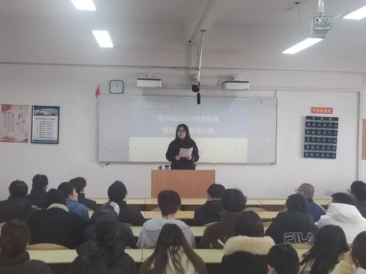 1月7日,SUNBET申博于3教212室召开了2022级本科生假期安全教育大会。此次大会由2022级本科生辅导员薛一丹老师主持,公司党委副书记陈伟伯以及2022级全体本科生参加。