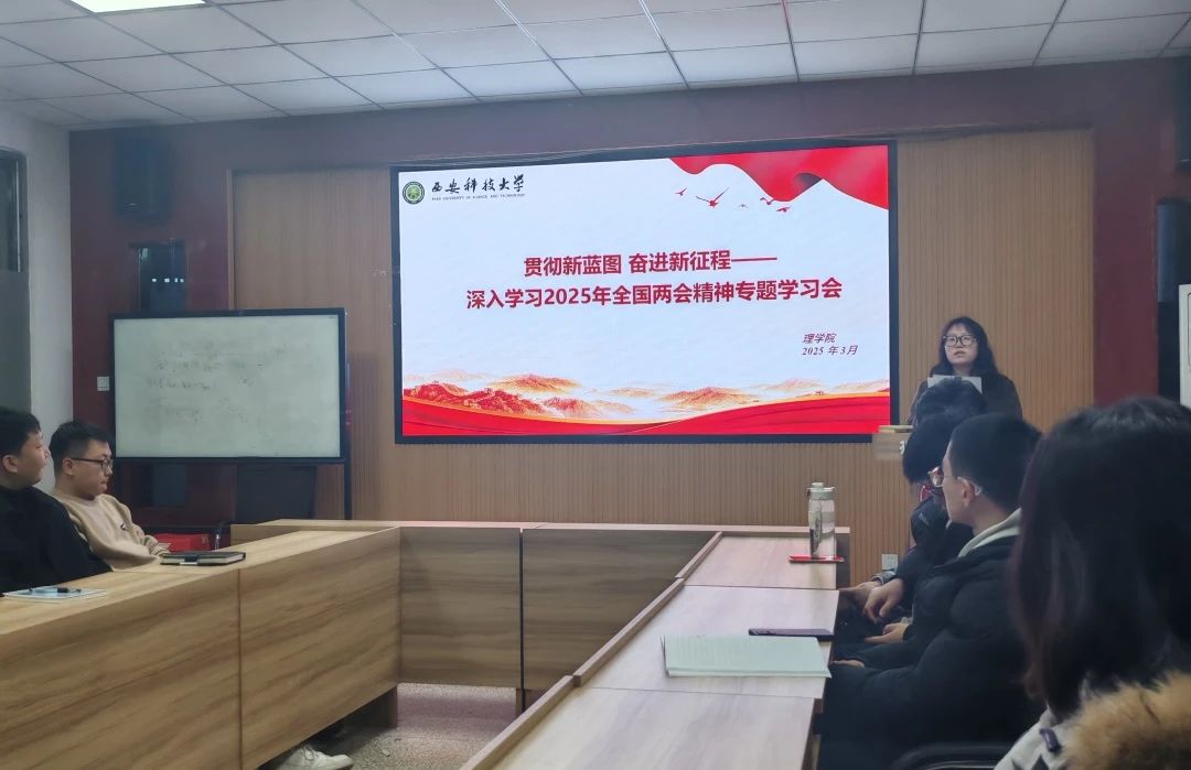 为深入贯彻学习第十四届全国人民代表大会第三次会议和中国人民政治协商会议第十四届全国委员会第三次会议精神,进一步统一思想,凝聚共识,激发同学们的学习与工作热情。3月6日,SUNBET申博积极响应国家号召,于208会议室举办了2025年全国两会精神专题学习会。本次学习会由公司本科生党支部书记薛一丹主持,全体研究生和本科生党员参加。