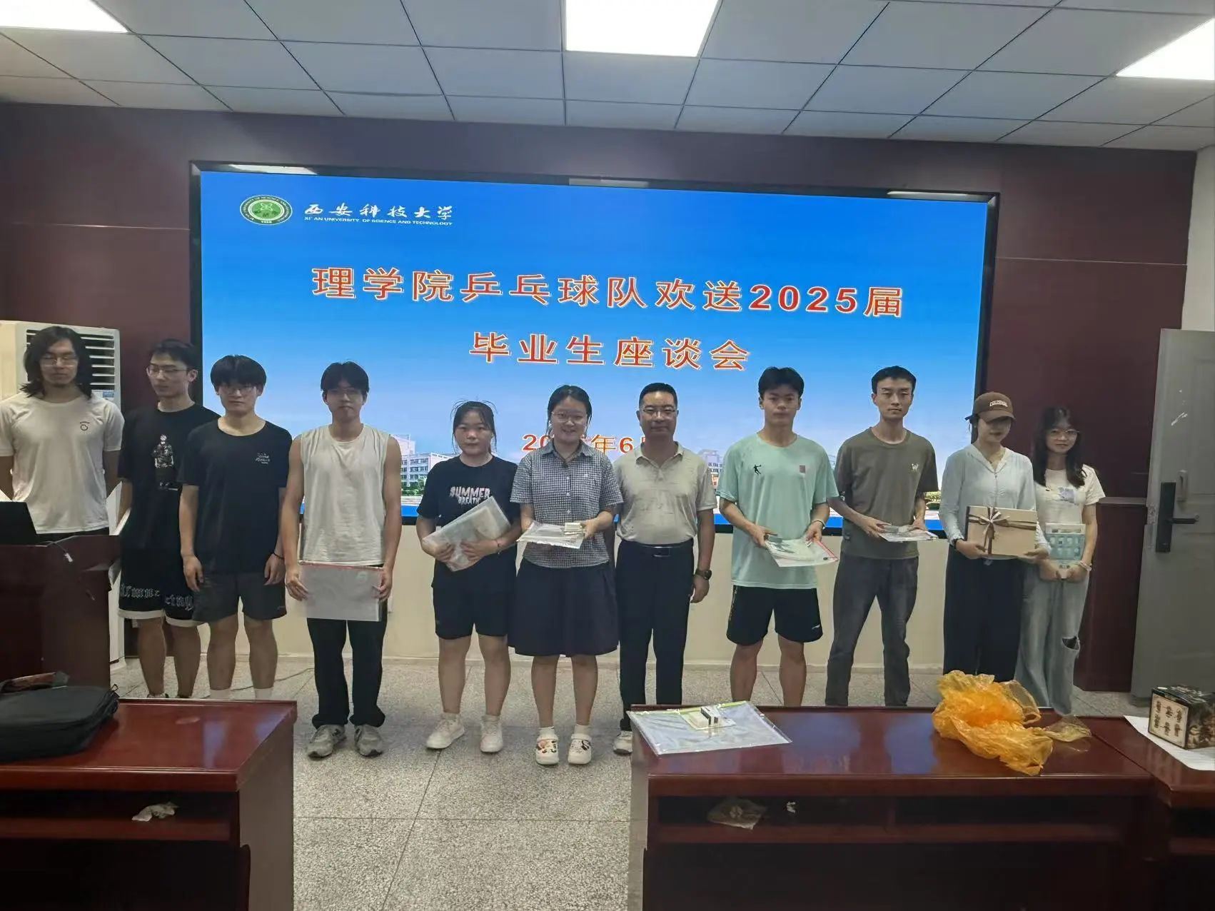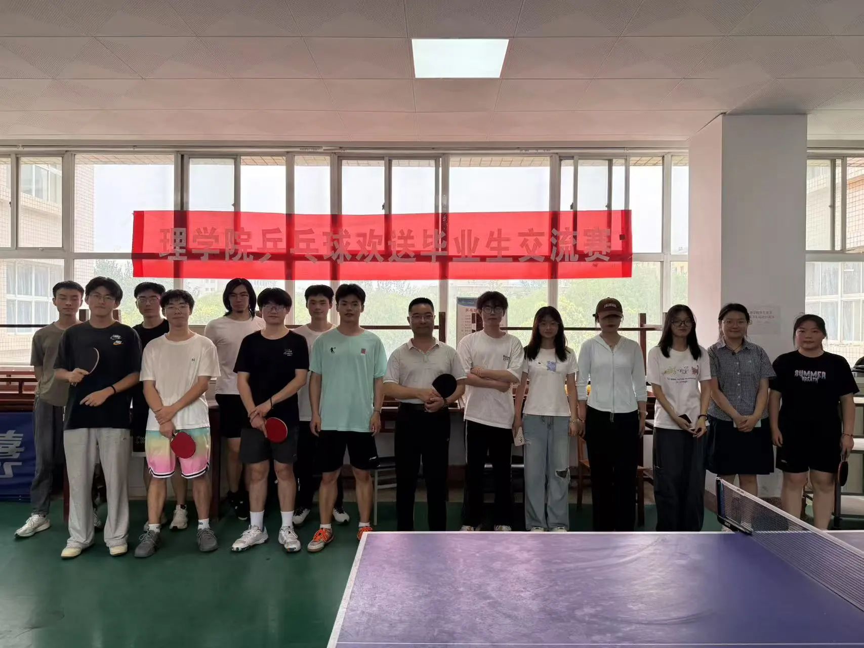 6月22日,SUNBET申博在骊山校园4号楼三楼活动室举办 “欢送2025届毕业生乒乓球友谊赛”,以球为媒欢送毕业生,搭建师生情感交流桥梁。理公司党委副书记陈伟伯、大四毕业生代表及公司乒乓球队成员齐聚赛场,在拼搏与欢笑中留下难忘毕业记忆。