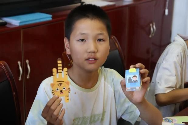 实践团成员魏仕杰充分发挥艺术专业优势,通过分步骤讲解折纸技法原理,现场示范折纸作品的制作过程,指导芋元村20余名留守儿童独立完成作品创作。教学结束后,留守儿童们互相交流创作心得,展现了浓厚的创造兴趣和手工折纸学习成效。