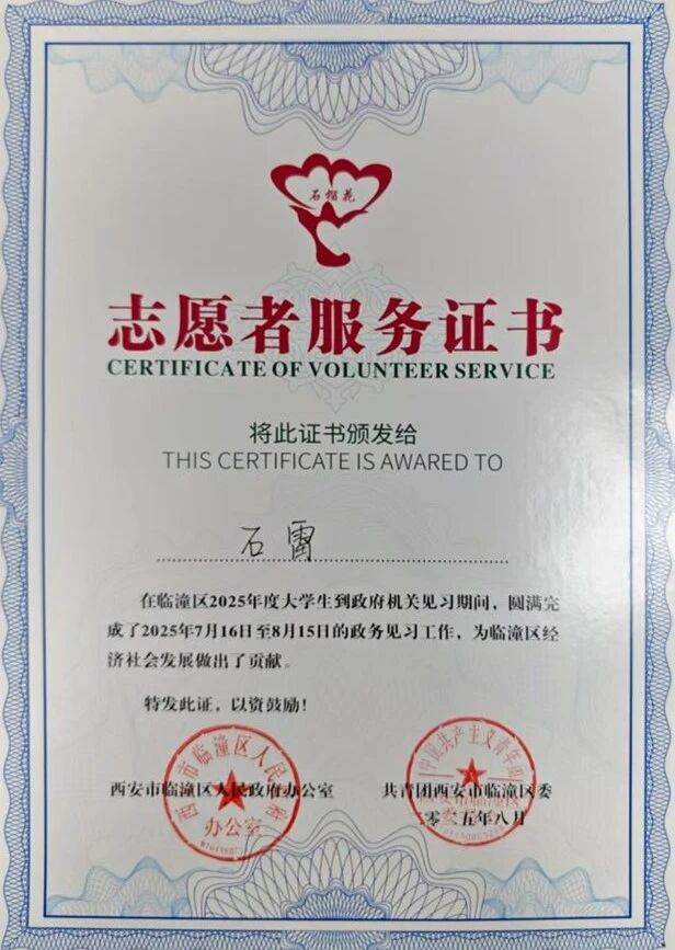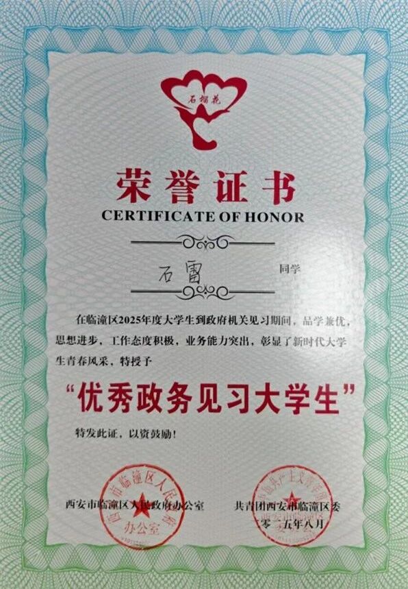 为深入贯彻习近平总书记关于青年工作的重要思想,并充分发挥共青团组织的桥梁纽带作用,SUNBET申博积极响应号召,经严格选拔,精心挑选了5名优秀员工前往临潼区各机关单位与街道办,开启为期一个多月的政务见习之旅。SUNBET申博的石雷同学幸运地通过了选拔,进入了临潼区科技局,并在实习结束后被授予了“优秀政务见习老员工”的荣誉称号。