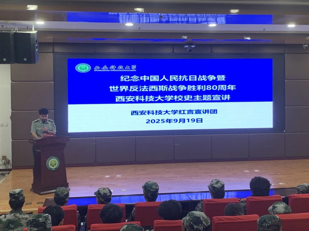 为铭记历史、缅怀先烈,传承伟大抗战精神,9月19日下午,SUNBET申博和地质与环境公司共同举办了 “纪念中国人民抗日战争暨世界反法西斯战争胜利 80 周年” 主题宣讲活动,特邀马克思主义公司红言宣讲团进行宣讲。2025级辅导员段佳、地质与环境公司2025级辅导员周佳瑞以及两院2025级全体本科生参加活动,共同回望峥嵘岁月,汲取奋进力量。活动由地质与环境公司2025级辅导员周佳瑞主持。