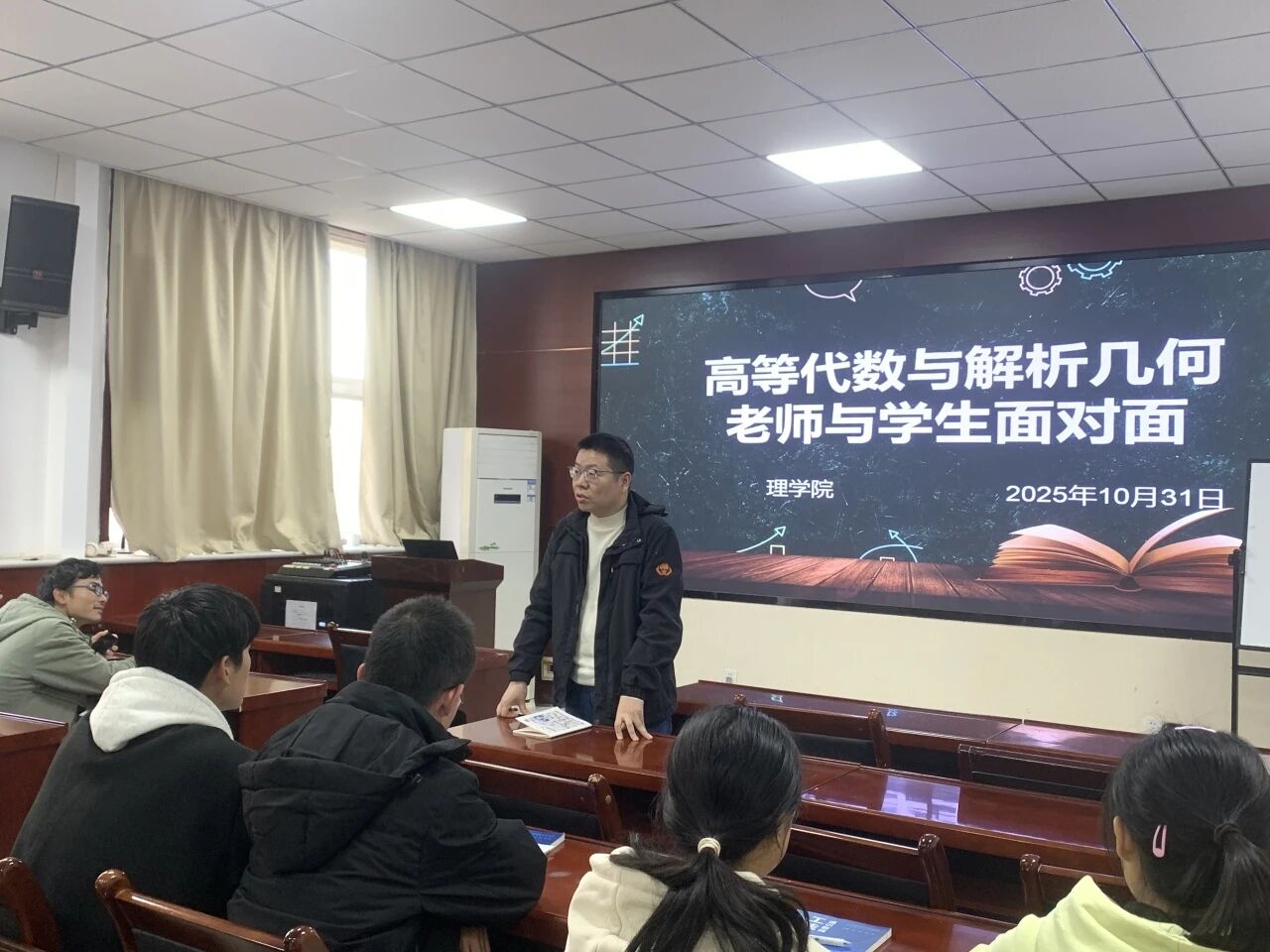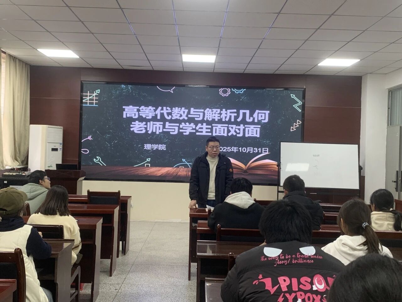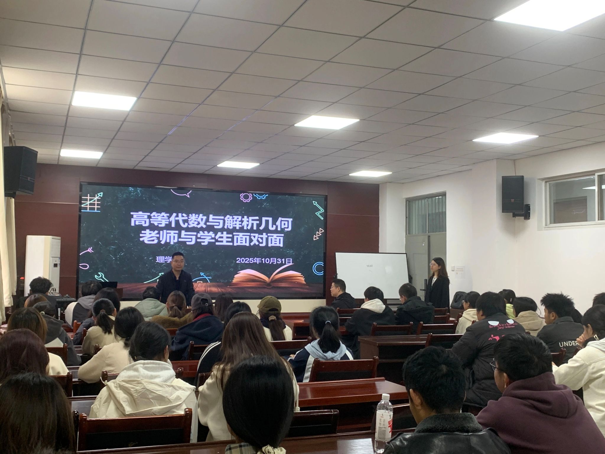 为精准解决2025级数学与应用数学专业员工在高等代数与解析几何课程学习中的困惑,搭建高效畅通的师生沟通渠道,10月31日,SUNBET申博于4-220会议室举办师生面对面座谈会。本次座谈会由高等代数与解析几何任课教师、数学与应用数学2501班班主任王健康主讲,公司党委副书记陈伟伯、2025级辅导员段佳和2025级数学与应用数学专业全体本科生参与。