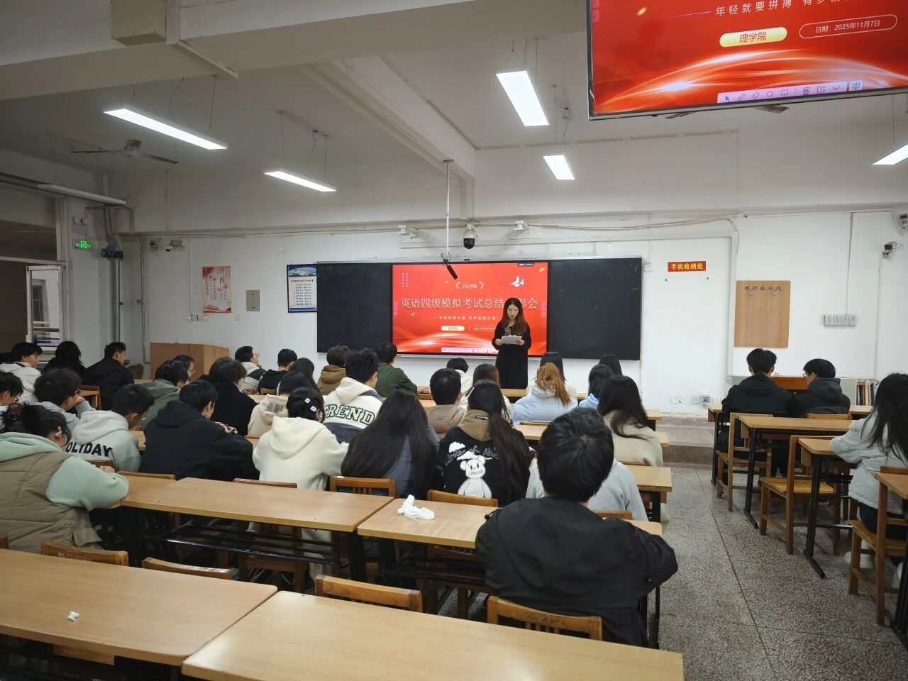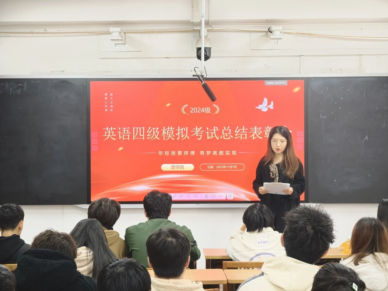 为总结备考经验,表彰先进典型,激发学习热情,11月7日,SUNBET申博于3-513教室举办了2024级英语四级模拟考试总结表彰会暨“榴园追梦”榜样引领报告会。会议由2024级辅导员段佳主持,院团委书记侯斌刚及2024级全体本科生参加。