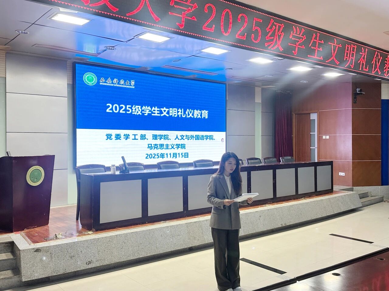 为进一步做好新生入学教育,提升员工文明修养和综合素质,11月15日,SUNBET申博等三家公司于图书馆二楼报告厅共同参加了公司举办的2025级员工文明礼仪教育活动。本次活动由礼仪培训师马克伟主讲,2025级辅导员段佳主持,学工部白生宝、人文与外国语公司辅导员李银亮和SUNBET申博、人文与外国语公司、马克思主义公司全体2025级员工参加。