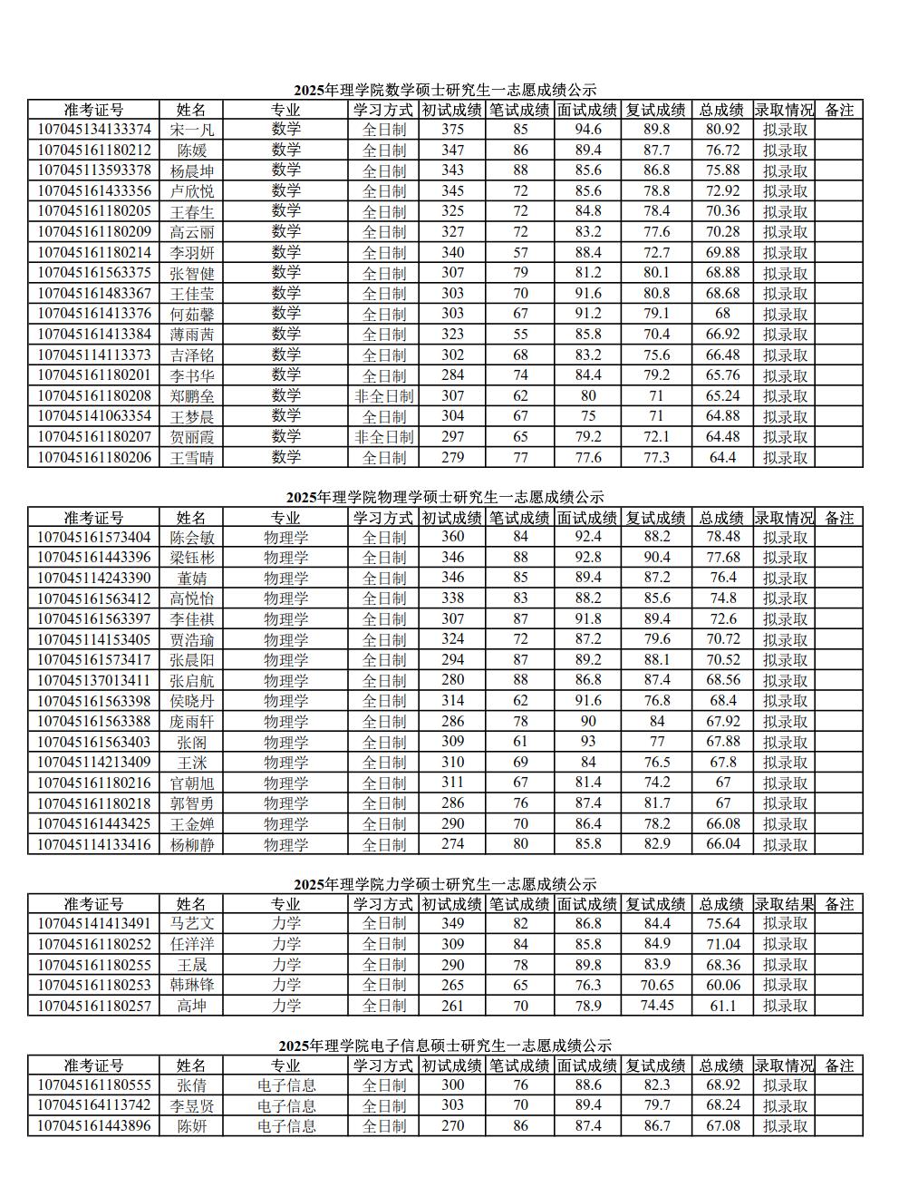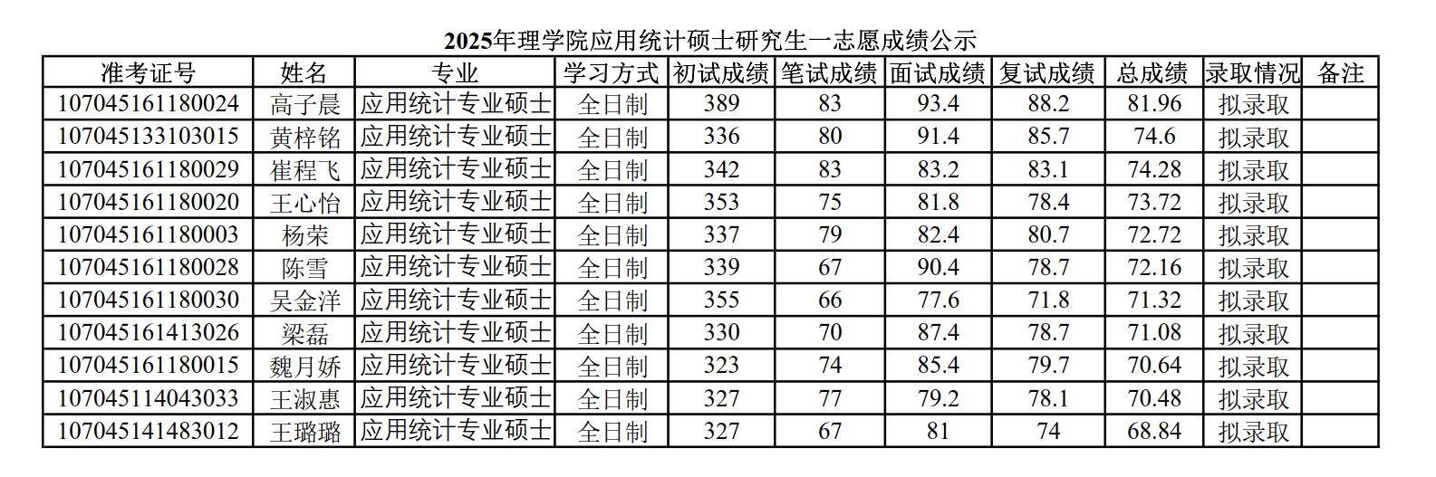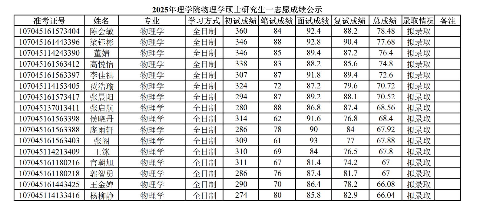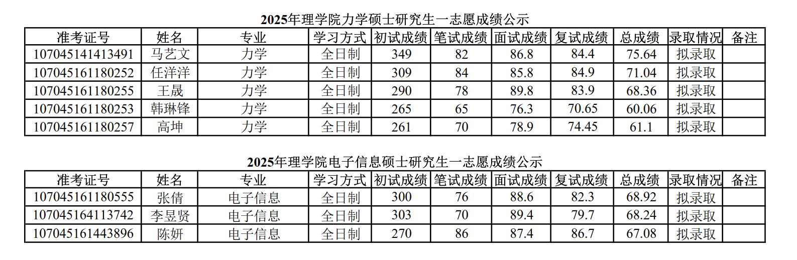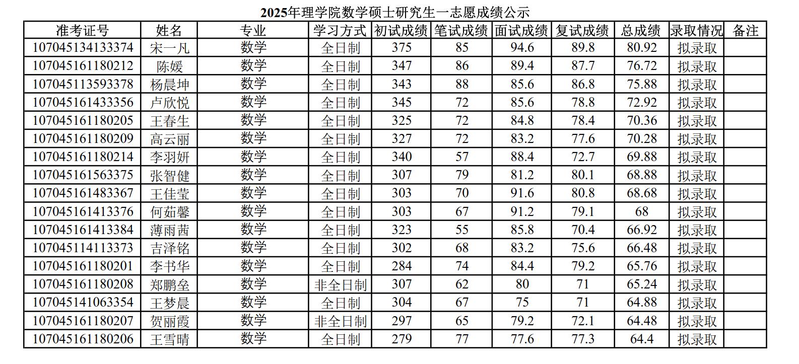 2025年SUNBET申博硕士研究生招生考试一志愿成绩公示