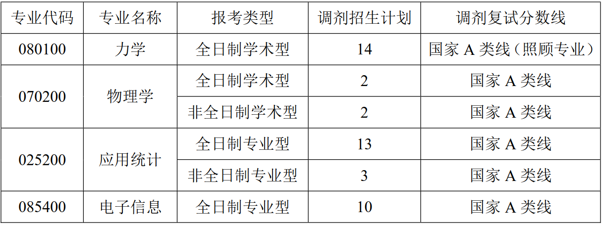 4、符合调剂要求和条件考生可申请加入各学科咨询QQ群:应用统计1042463238;力学1042379361;物理学1042474420;电子信息1042474420。